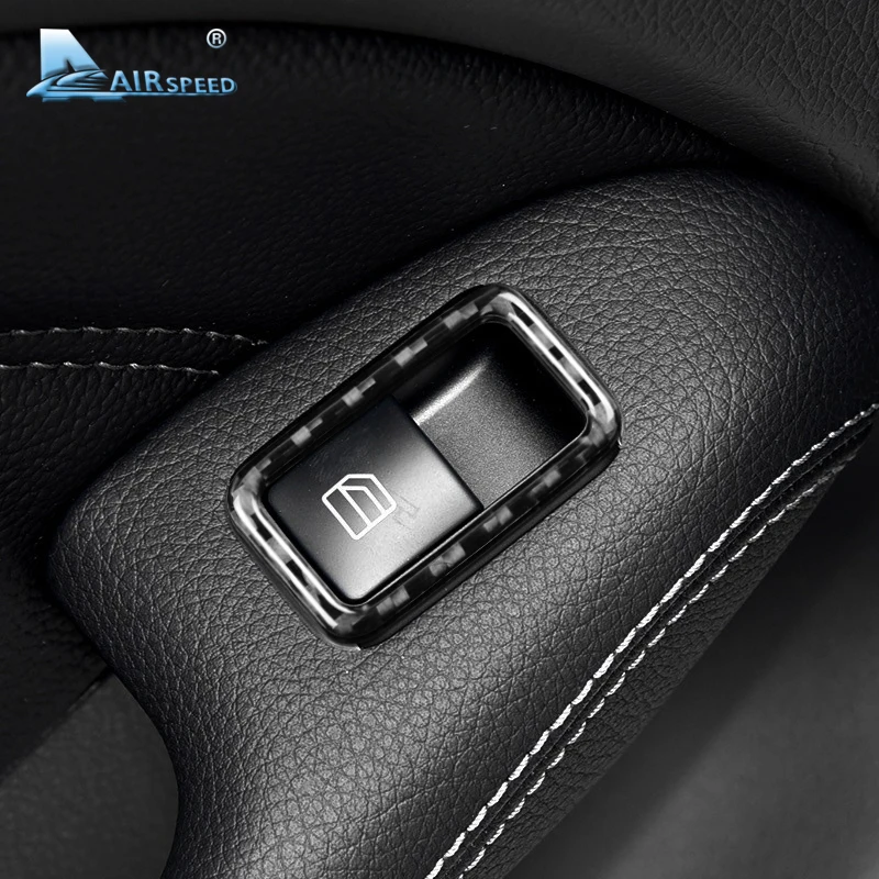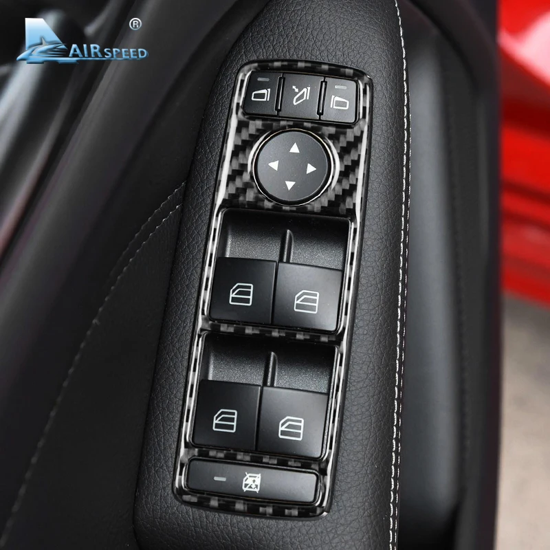 Product Name: Airspeed для Mercedes Benz A B C E Class GLE GLA ML GL аксессуары из углеродного волокна наклейки для салона автомобиля оконный переключатель накладка