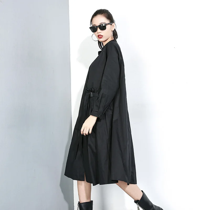 Special Offer [EAM] женское Плиссированное Платье рубашка большого размера с разрезом, новинка, воротник стойка, длинный рукав, свободный крой, мода, весна о... Discount 33% Today!