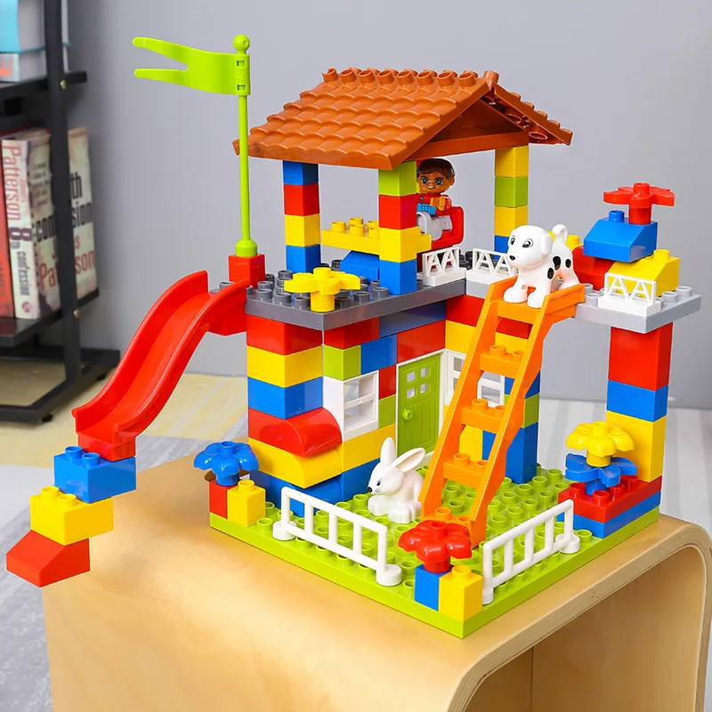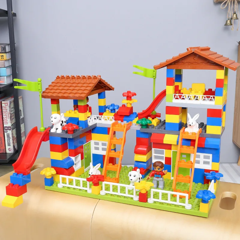 Product Name: DIY красочный городской дом на крыше большие частицы замок строительные блоки Совместимые Legoings Duploe творческие Кирпичи игрушки для детей под...