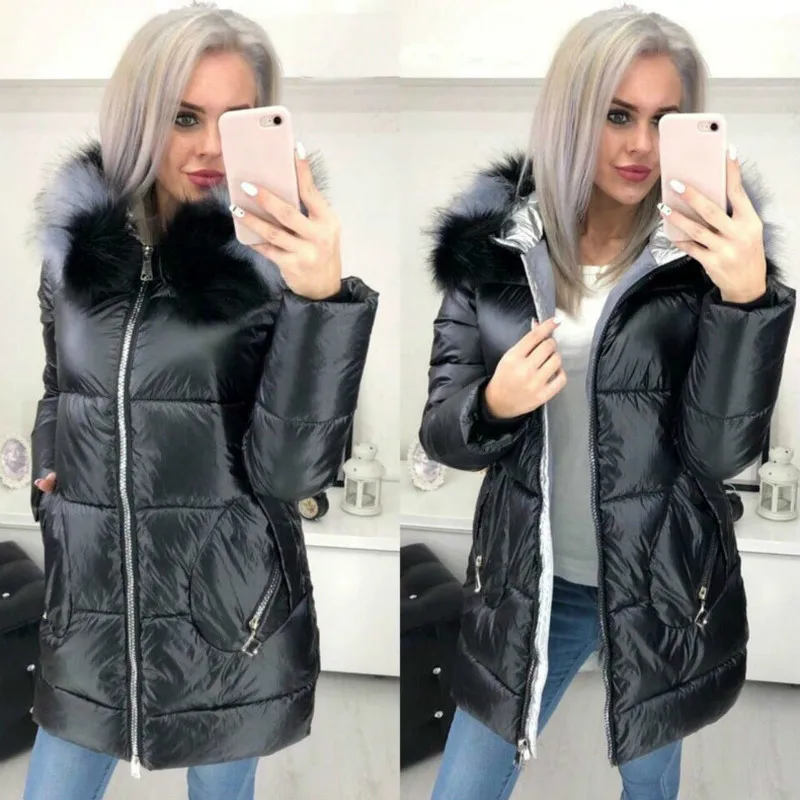 (49% Off) Купить FORERUN, Большая Меховая куртка с капюшоном, женское длинное зимнее пальто, женские глянцевые повседневные куртки, хлопковая стеганая парка, ма... Цена Дешево