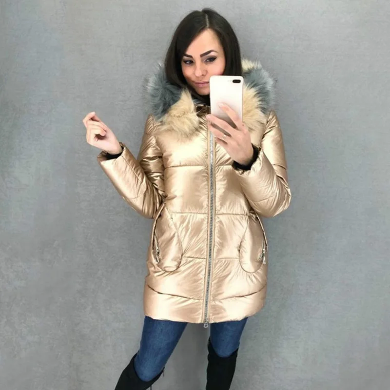 Product Name: FORERUN, Большая Меховая куртка с капюшоном, женское длинное зимнее пальто, женские глянцевые повседневные куртки, хлопковая стеганая парка, ма...