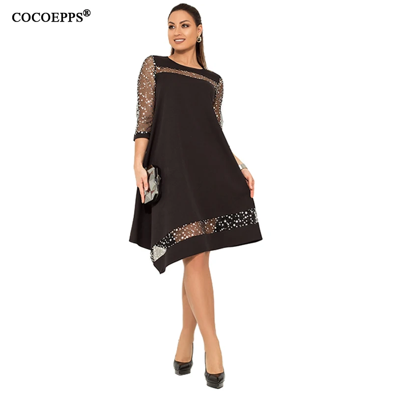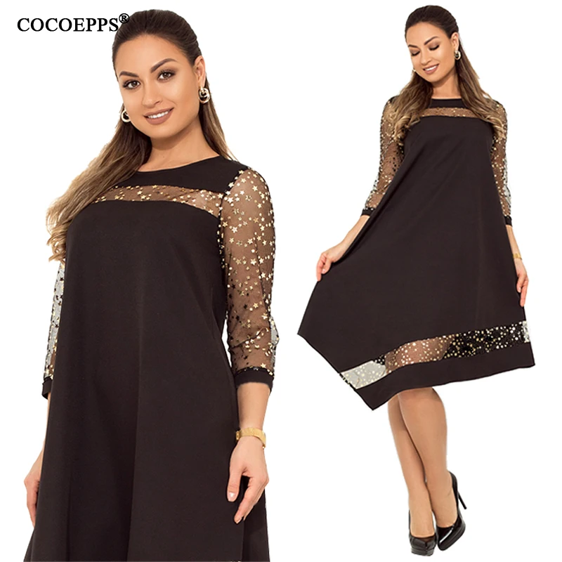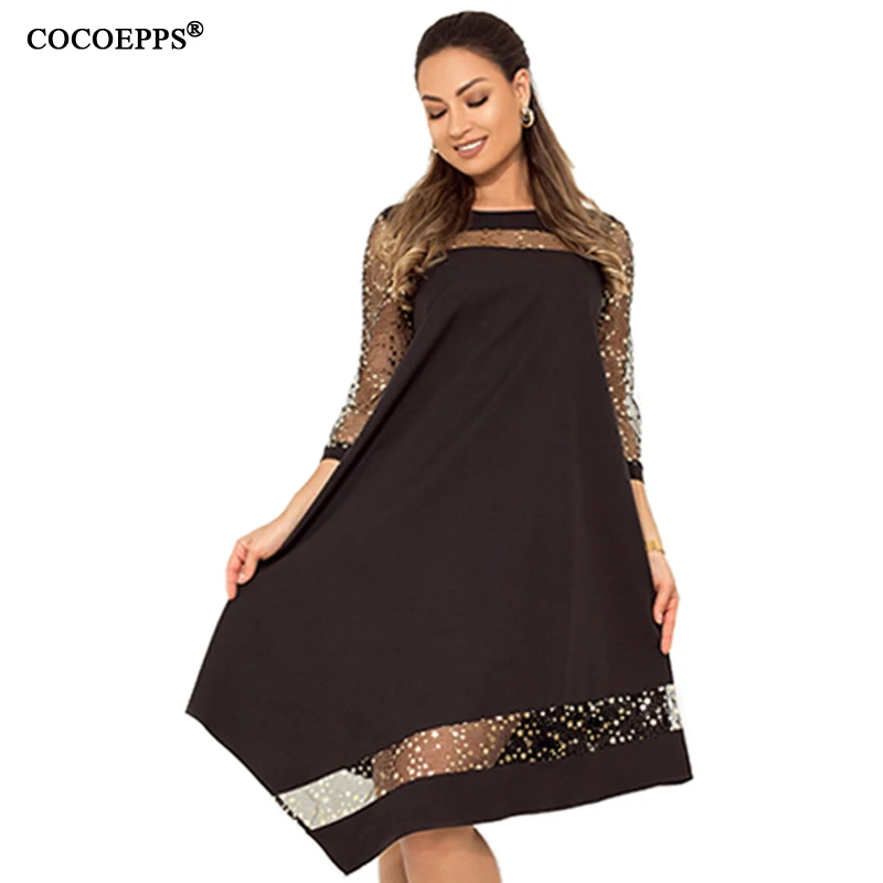 Special Offer Женское кружевное платье с блестками COCOEPPS, черное летнее платье большого размера 2020, Сетчатое платье для вечеринки Discount 51% Today!