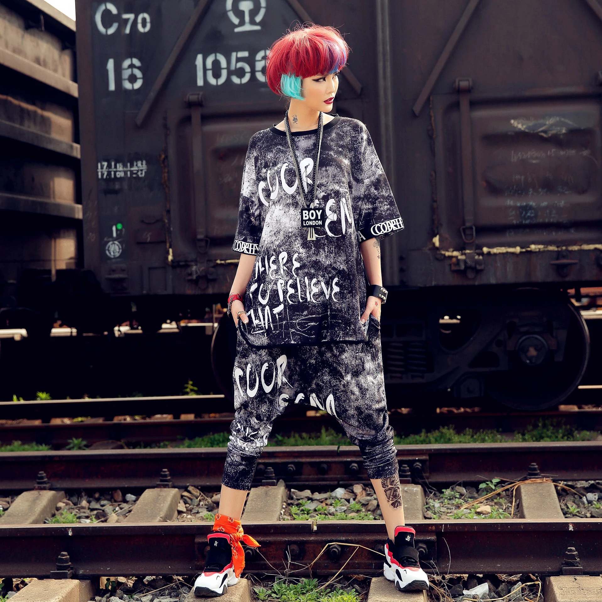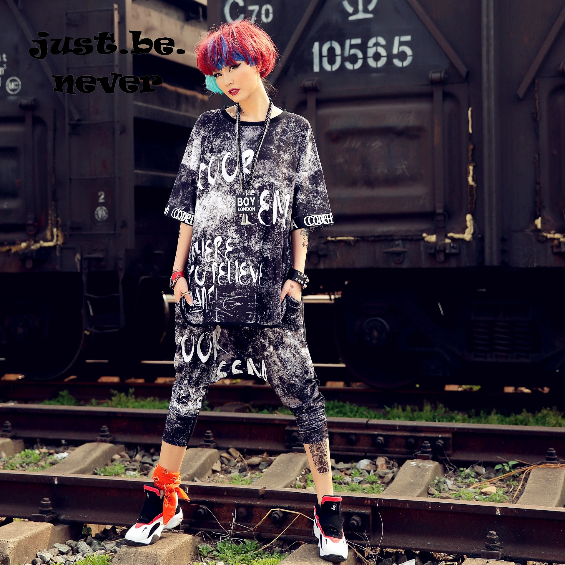 Special Offer Just. be. never модные женские брюки в стиле хип хоп Kawaii, корейский эластичный пояс, шаровары с граффити, черно белые, с буквенным принтом, свободны... Discount 51% Today!