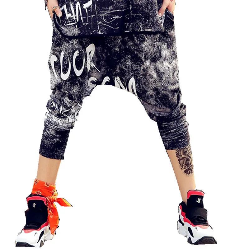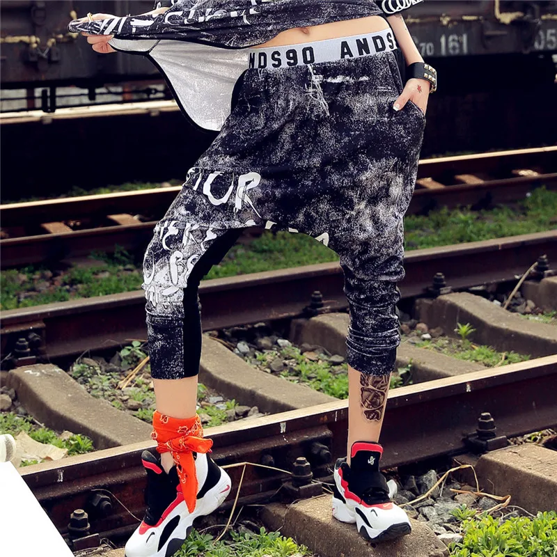 (51% Off) Купить Just. Be. Never модные женские брюки в стиле хип хоп Kawaii, корейский эластичный пояс, шаровары с граффити, черно белые, буквенным принтом, свободны... Цена Дешево