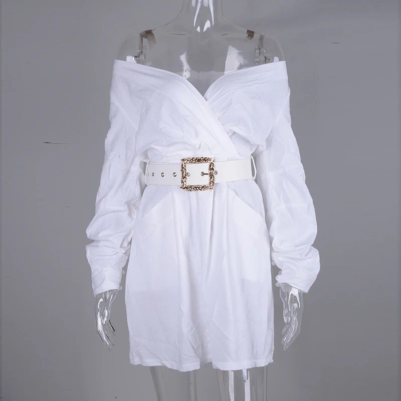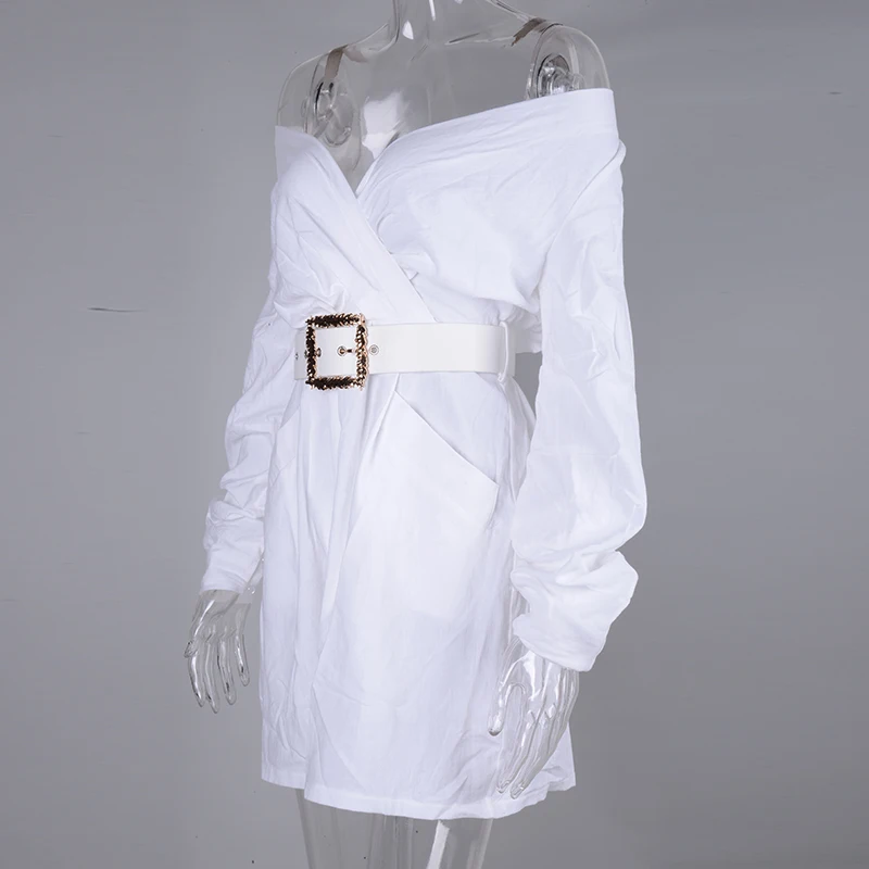 Product Name: Женское вечернее платье с открытыми плечами NewAsia, белое платье с длинными рукавами фонариками и поясом, бежевое мини платье с запахом, осень ...