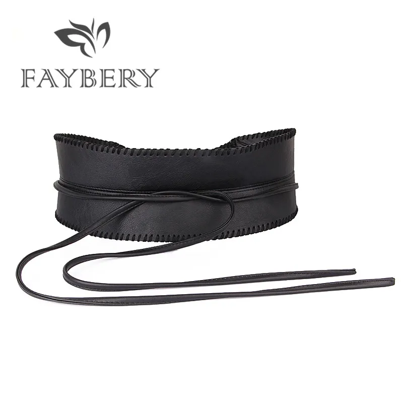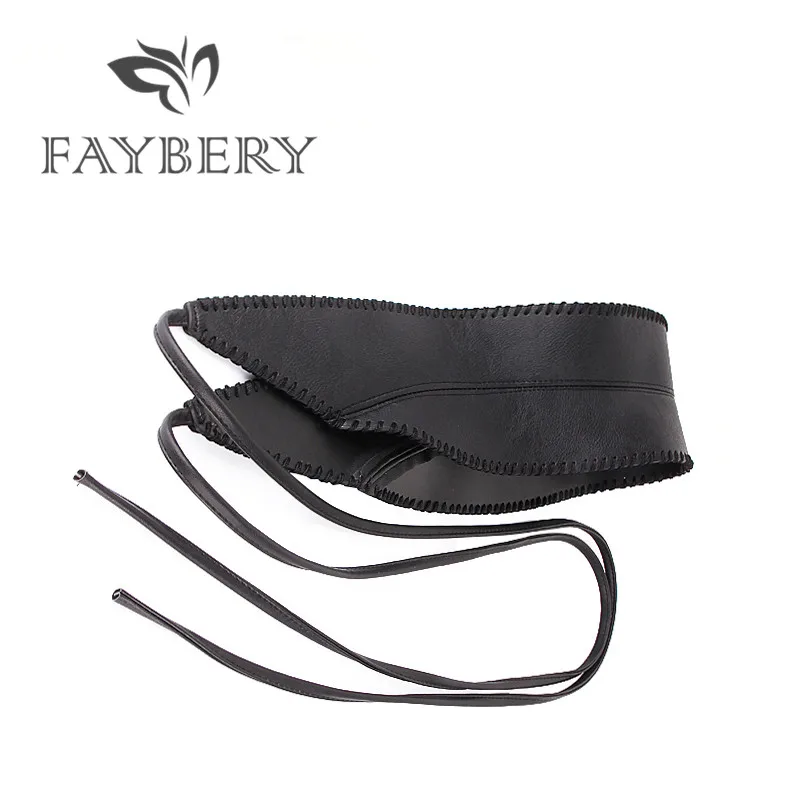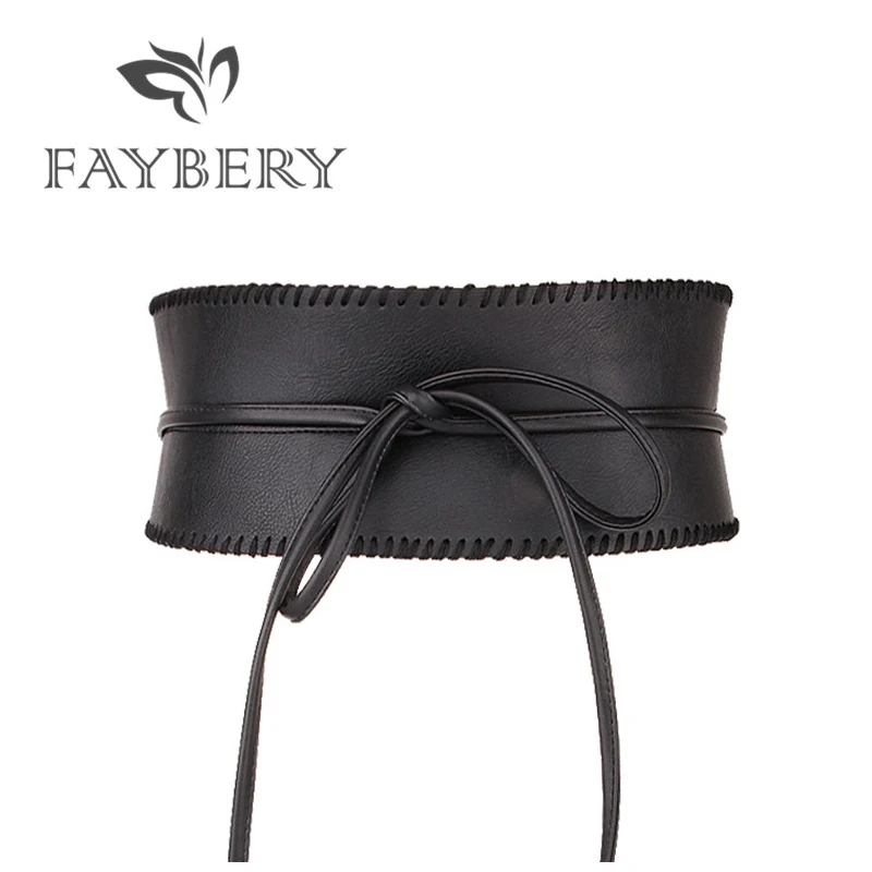 (60% Off) Купить Элегантные широкие ремни для женщин из мягкой искусственной кожи с бантом, пояс Obi Style, черный длинный Цена Дешево