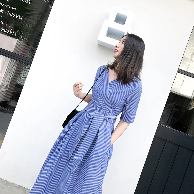 Special Offer Женское платье средней длины Lachicer, синее платье в полоску с бантом и поясом, летнее элегантное платье трапеция, 2019 Discount 0% Today!
