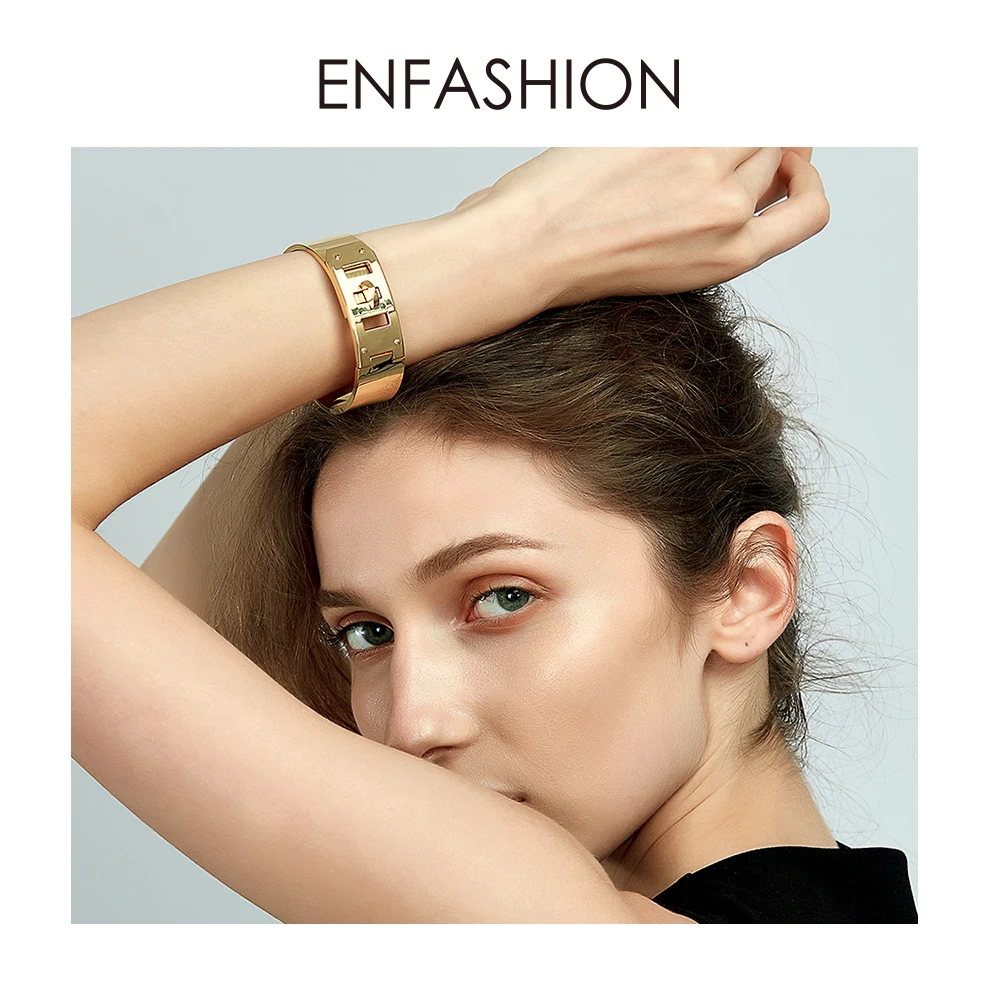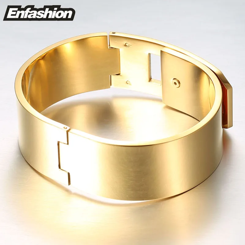 Product Name: Enfashion ювелирные изделия панк широкий пояс Пряжка браслет на запястье золотой цвет нержавеющая сталь браслеты для женщин браслет Pulseiras