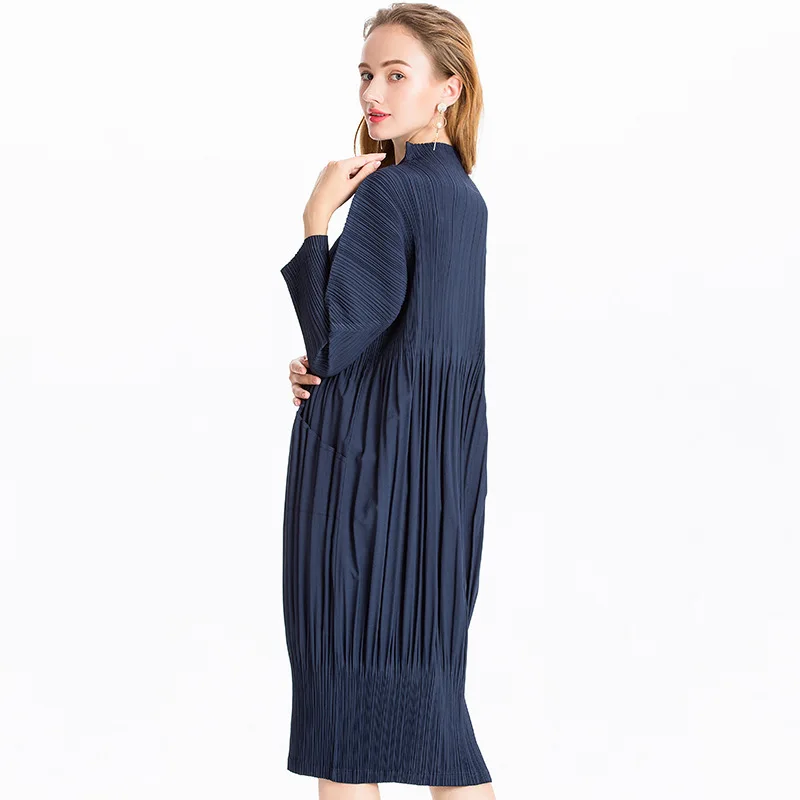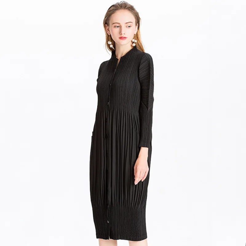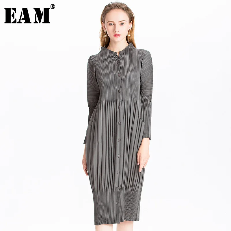 Special Offer [EAM] 2020 новое осенне зимнее черное плиссированное платье со стоячим воротником и длинным рукавом большого размера JL566 Discount 18% Today!