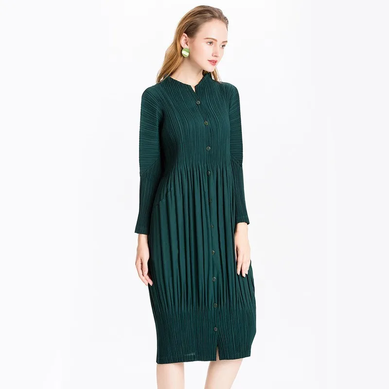 (18% Off) Купить [EAM] 2020 новое осенне зимнее черное плиссированное платье со стоячим воротником и длинным рукавом большого размера JL566 Цена Дешево