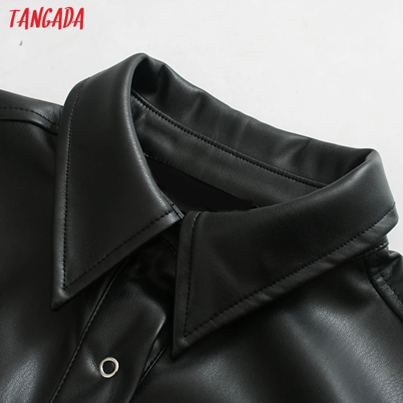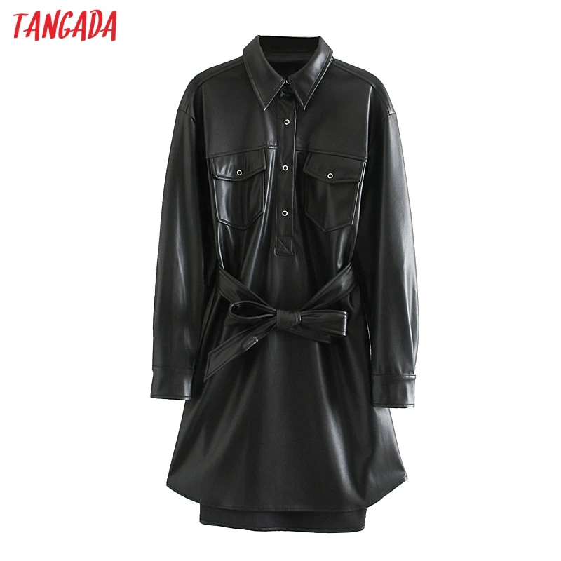 Product Name: Tangada женское платье рубашка из искусственной кожи с поясом и длинным рукавом в стиле ретро элегантное женское черное мини платье vestido JE110