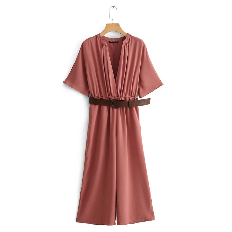 Special Offer Женский комбинезон, однотонный Повседневный пляжный комбинезон с коротким рукавом и v образным вырезом, сексуальный длинный комбинезон с п... Discount 30% Today!