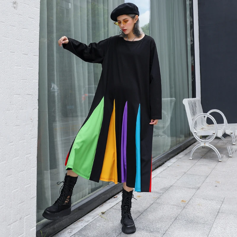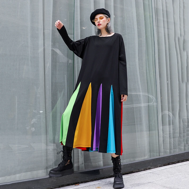 Special Offer [EAM] женское разноцветное Полосатое платье большого размера, новинка, круглый вырез, длинный рукав, свободный крой, модная одежда, весна осен... Discount 33% Today!