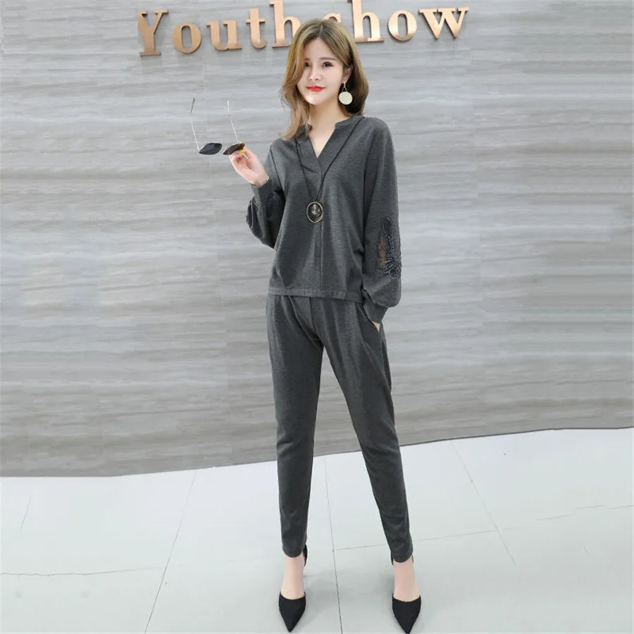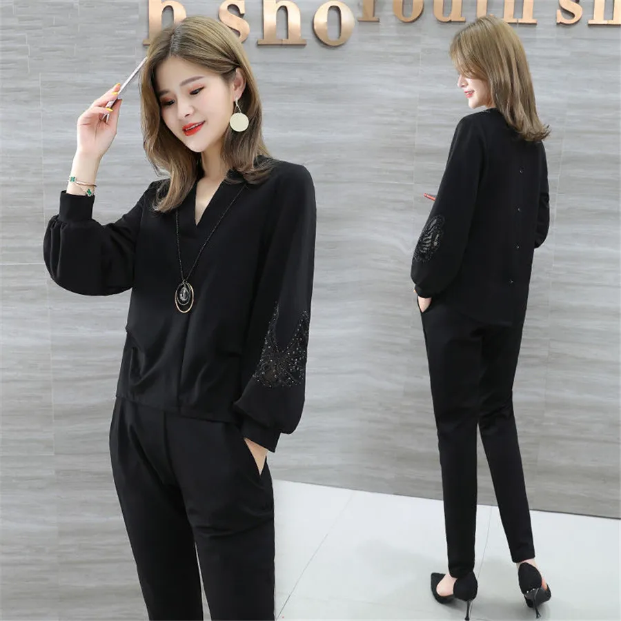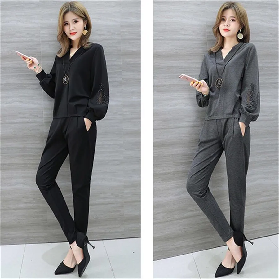 Special Offer 5XL комплект из 2 предметов, большой размер, женские топы + штаны, Осень зима, повседневные офисные женские костюмы большого размера, элегантна... Discount 40% Today!