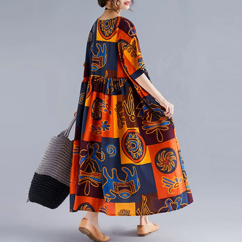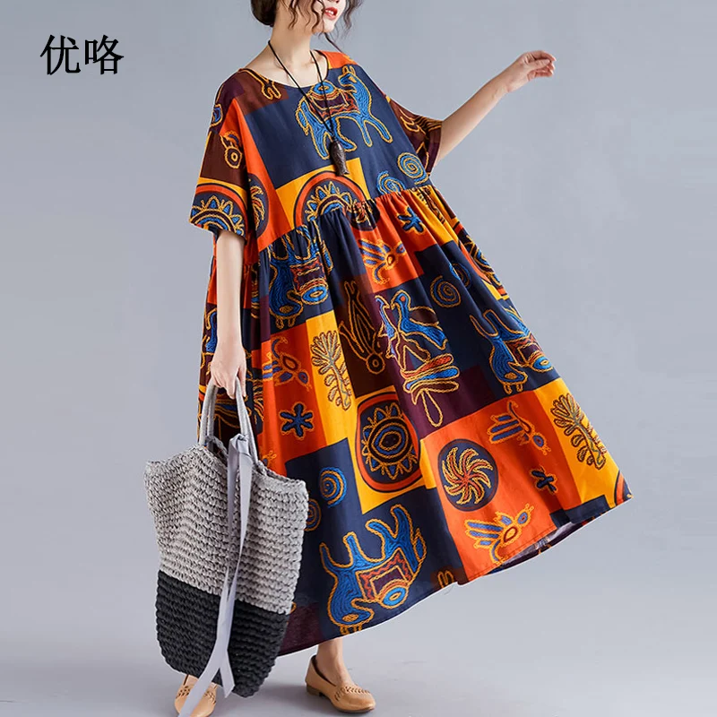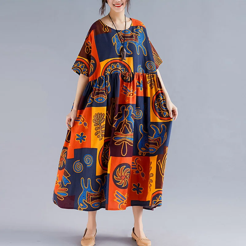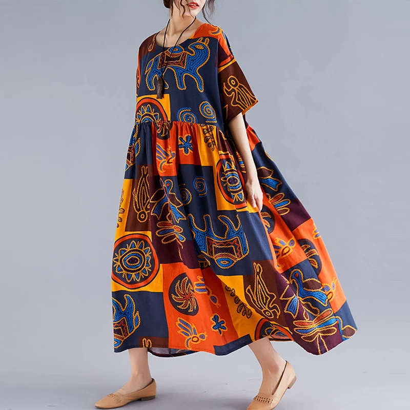 Special Offer Женское платье с этническим принтом, винтажное хлопковое платье большого размера, льняное свободное повседневное длинное платье большого ... Discount 40% Today!