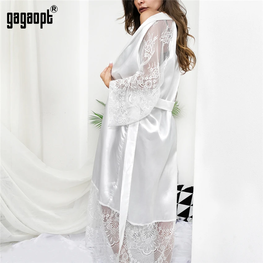 Product Name: Женские Кружевные ночные рубашки Gagaopt, 3 вида цветов с длинным рукавом и поясом, весна 2019