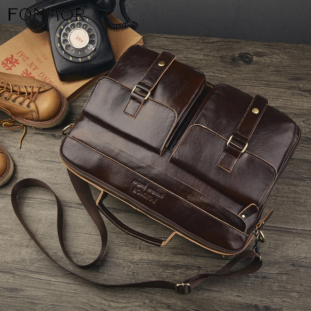 Special Offer Fonmor Новинка 100% Мужские портфели из воловьей кожи большие сумки из натуральной кожи сумки на молнии мужские бизнес с застежкой карманные сум... Discount 47% Today!