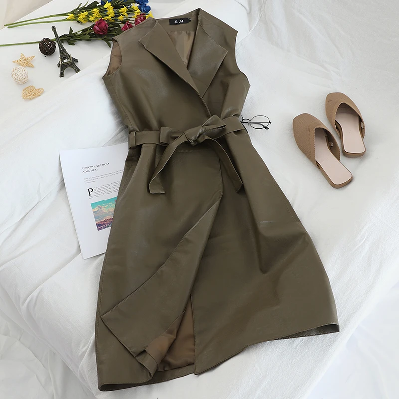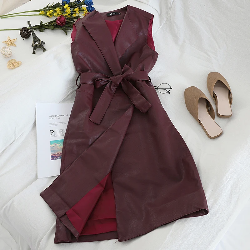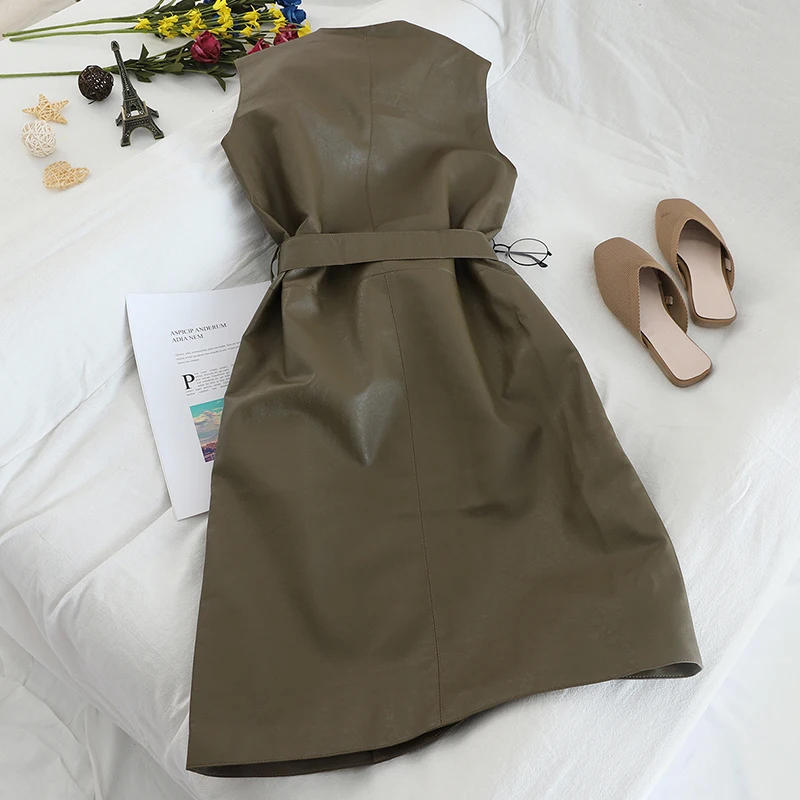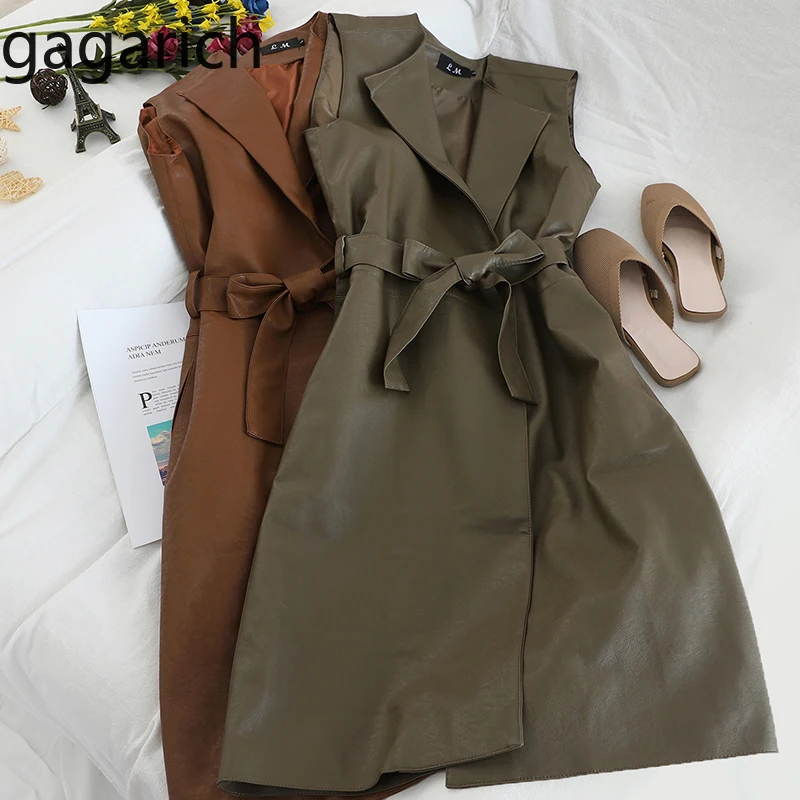 Product Name: Gagarich женские жилеты без рукавов средней длины с поясом на талии женский элегантный осенне зимний Свободный жилет из искусственной кожи 2020