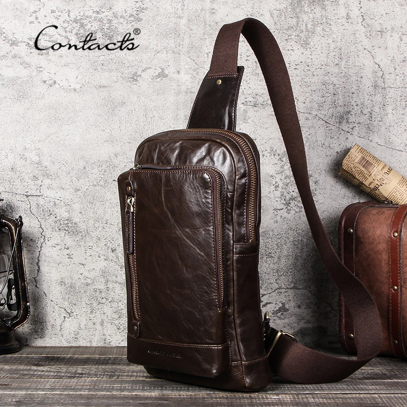 (48% Off) Купить Мужская поясная сумка из натуральной кожи с карманом на молнии для 9.7in Ipad, винтажная металлическим замком, мужской нагрудный... Продажа Дешево