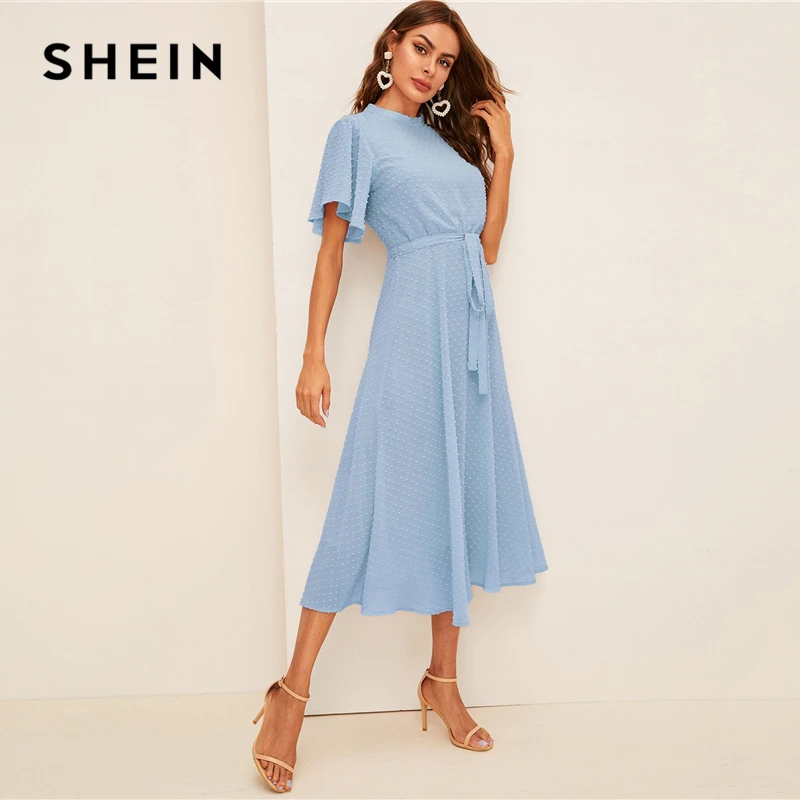 (48% Off) Купить SHEIN платье в горошек с рукавами крылышками, элегантное розовое Пастельное однотонное женское воротником стойкой, ТРАПЕЦИЕВИДНОЕ П... Цена Дешево