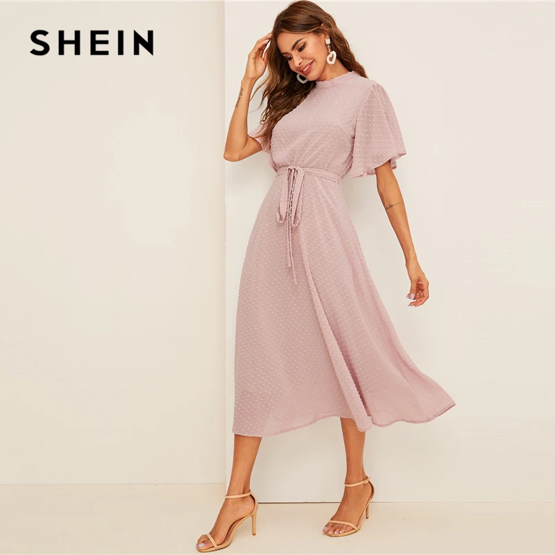 Special Offer SHEIN платье в горошек с рукавами крылышками, элегантное розовое Пастельное однотонное женское платье с воротником стойкой, ТРАПЕЦИЕВИДНОЕ П... Discount 48% Today!