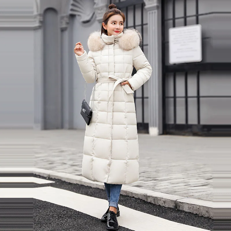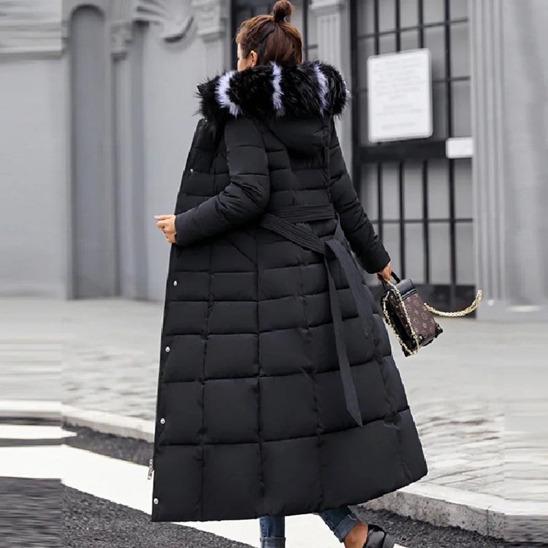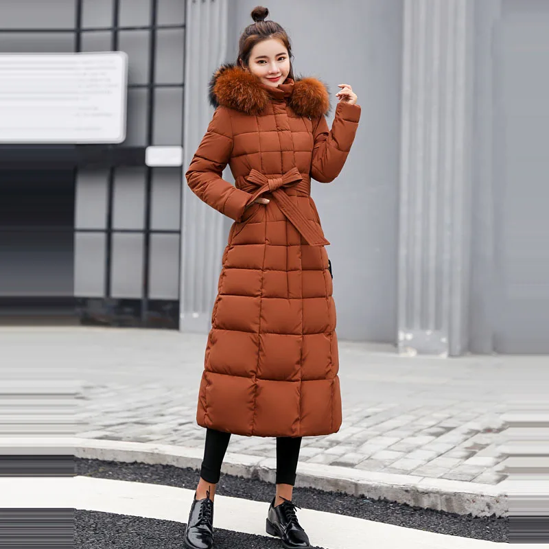 Special Offer Новинка 2019, Зимняя женская куртка, теплая, модная, с бантом, с поясом, воротник из лисьего меха, пальто, длинное платье, женское плотное пальто Discount 49% Today!