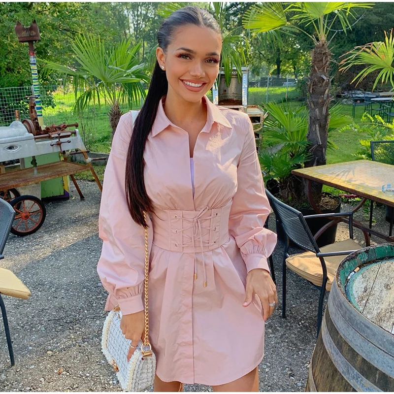 Product Name: NewAsia платье рубашка с длинным рукавом и корсетным поясом, Повседневное платье для женщин, винтажное сексуальное платье, розовые модные плат...