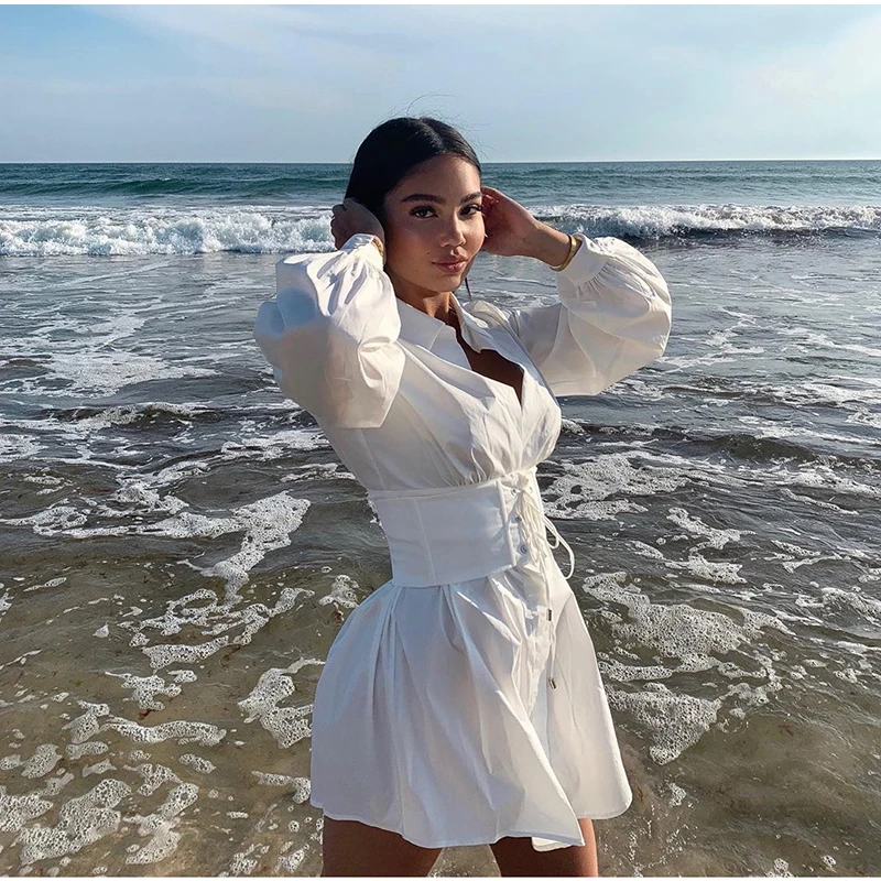 (49% Off) Купить NewAsia платье рубашка с длинным рукавом и корсетным поясом, Повседневное платье для женщин, винтажное сексуальное платье, розовые модные плат... Цена Дешево
