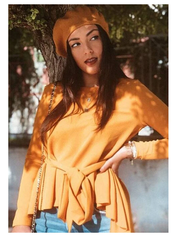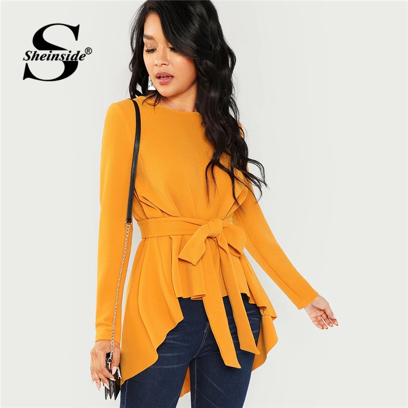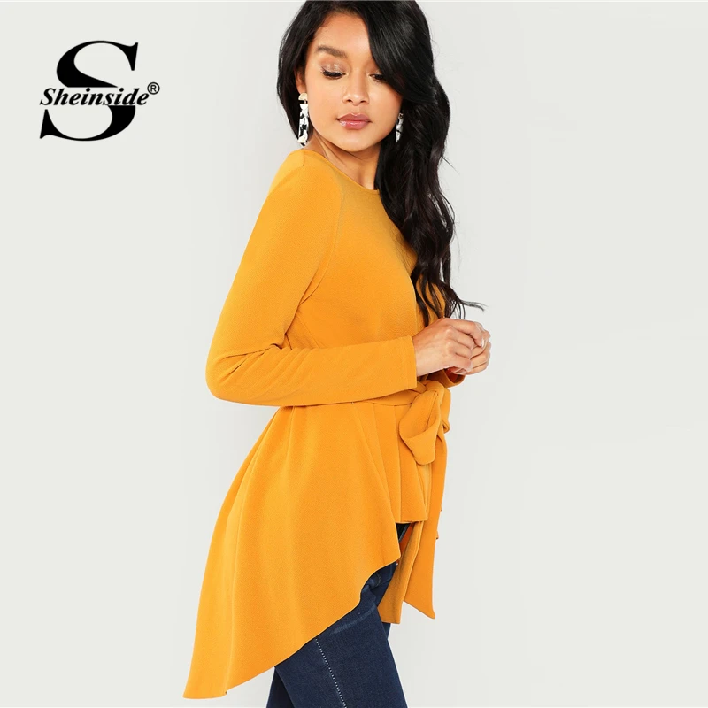 Product Name: Женская офисная блузка Sheinside Ginger, Асимметричный топ с поясом и длинным рукавом