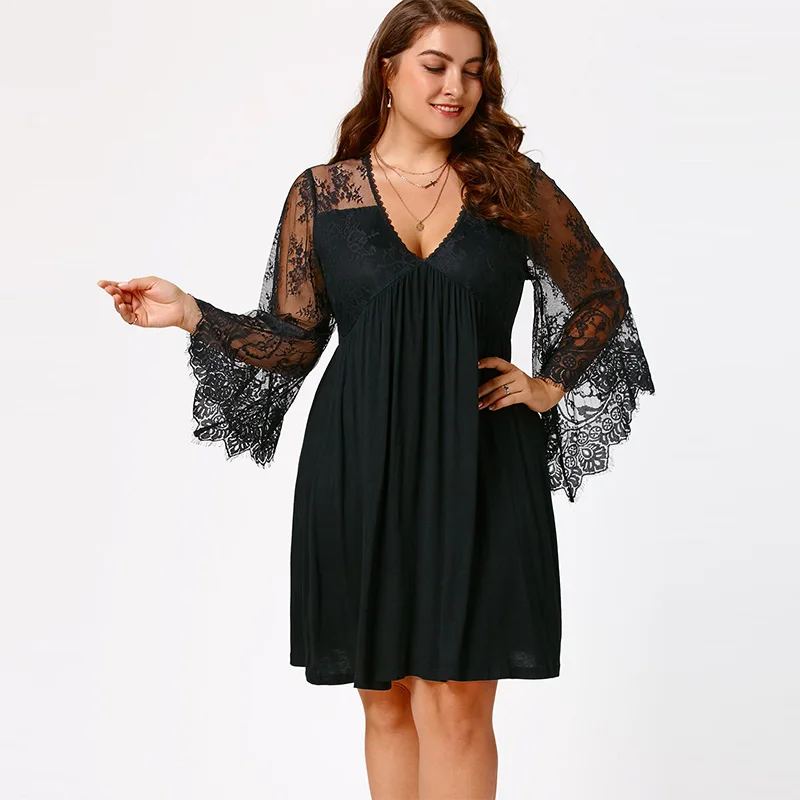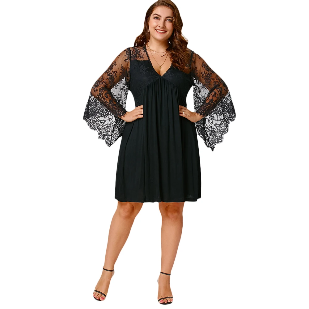 Product Name: Женское платье туника Rosegal, кружевное платье туника с расклешенным рукавом, большие размеры 5XL, осень 2018