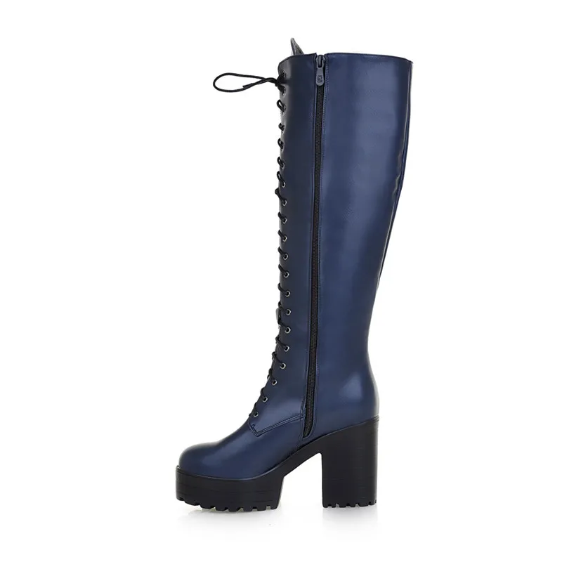 Product Name: MORAZORA 2020 новые сапоги до колена, женские сапоги на шнуровке, на молнии, на высоком каблуке, сапоги на платформе, осенне зимняя обувь в стиле па...