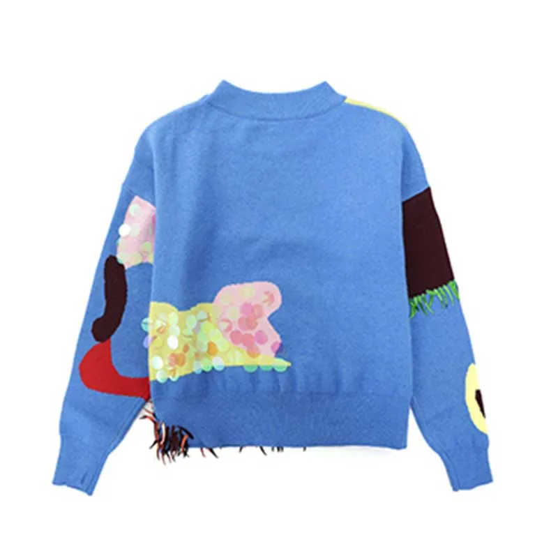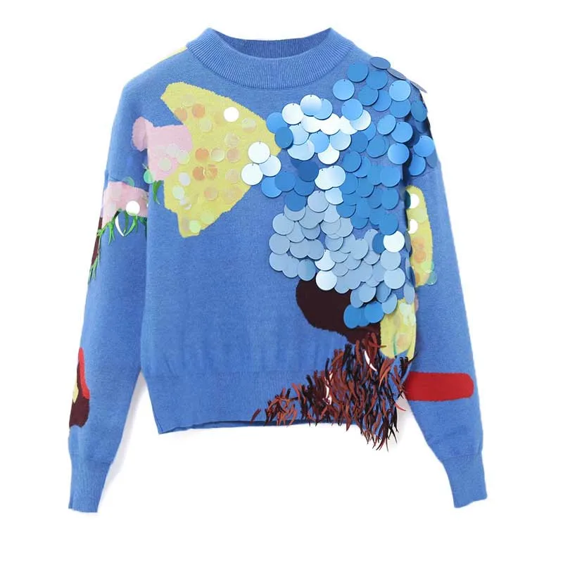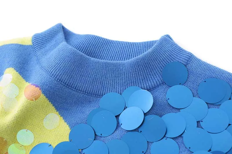 Product Name: NiceMix Модный Цветной лоскутный свитер с большими пайетками, шикарный женский пуловер с круглым вырезом, короткие свитера, вязаные топы