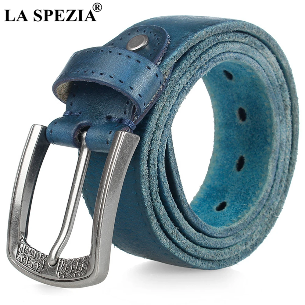 Product Name: LA SPEZIA синий мужской повседневный ремень высокого качества для джинсов винтажный ремень из натуральной коровьей кожи мужской повседневный ...