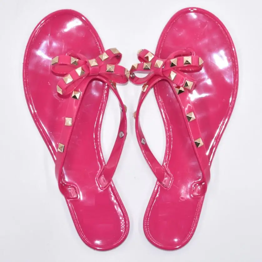 Special Offer Лидер продаж 2017 года; Модные женские Вьетнамки; Летняя обувь; красивые пляжные сандалии на плоской подошве с заклепками и большим бантом; бр... Discount 66% Today!