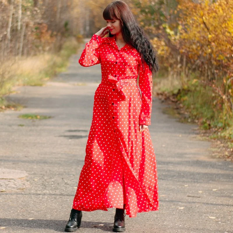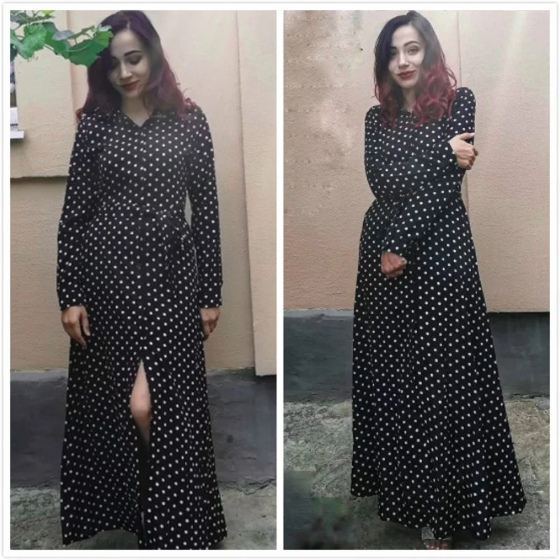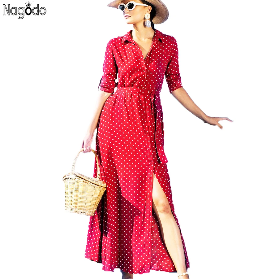 (0% Off) Купить Женское платье рубашка Nagodo, винтажное шифоновое платье в горошек с длинным рукавом и тонким бантом на поясе, лето 2019 Цена Дешево