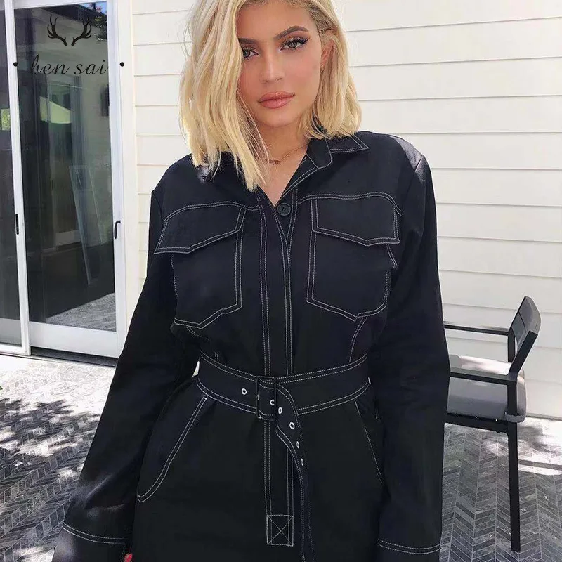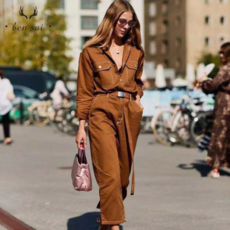 Special Offer Женский джинсовый сексуальный комбинезон, комбинезон с длинным рукавом и поясом, черный, белый, хаки, женский джинсовый комбинезон, женские ... Discount 0% Today!