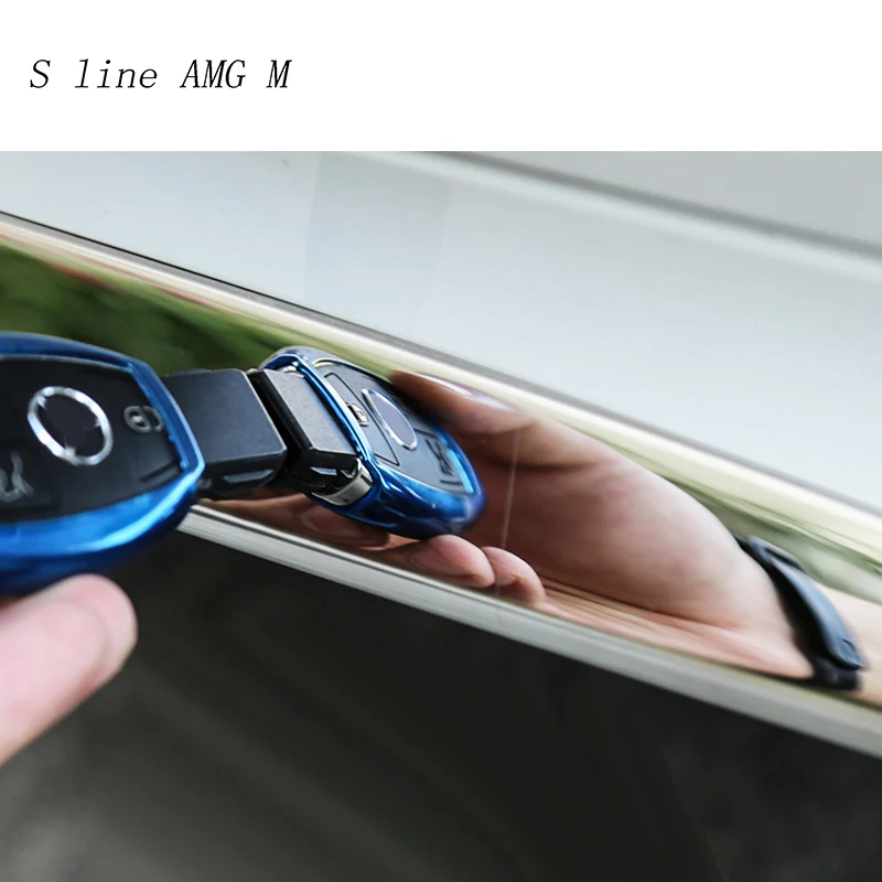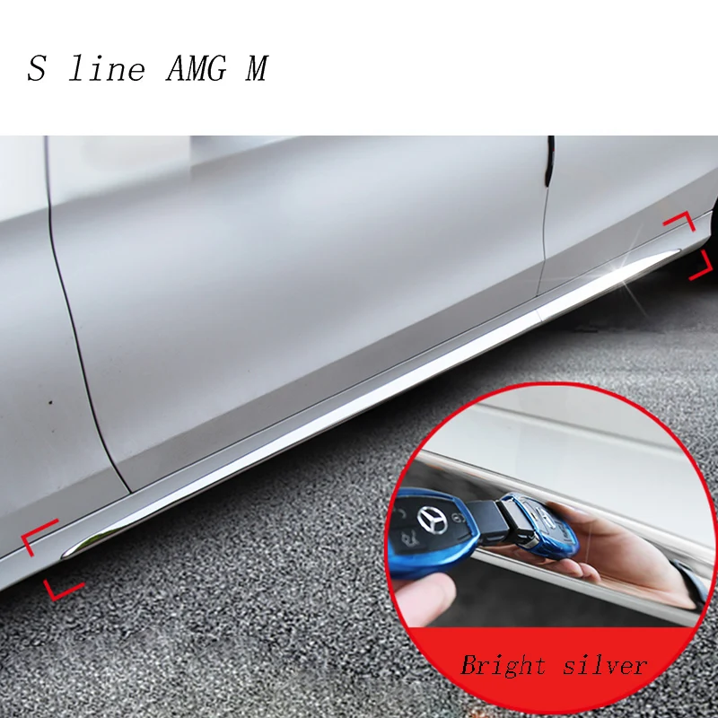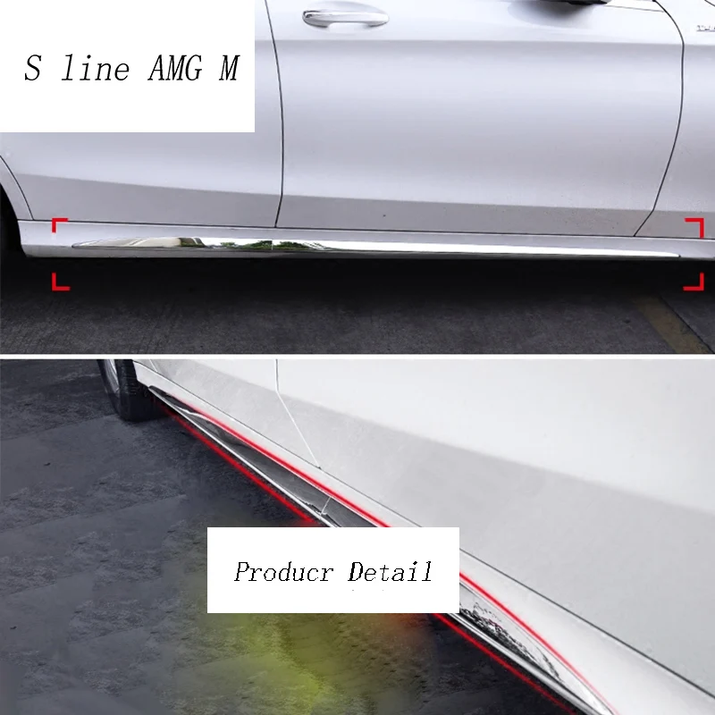 Product Name: Автомобильный Стайлинг Авто Боковая юбка автомобиля наклейка из нержавеющей стали боковое тело декоративная отделка дверей для Mercedes Benz C ...