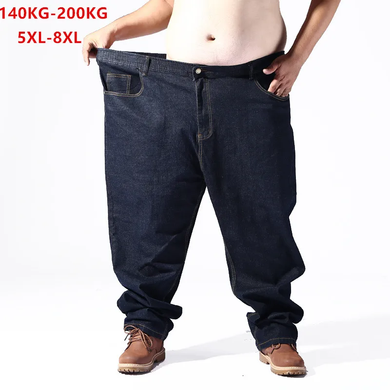 (15% Off) Купить Черные мужские джинсы больших размеров 5XL 6XL 7XL 8XL 54 56 58 59 60 200 кг эластичные джинсовые брюки S бренд 2019 мужская одежда Продажа Дешево