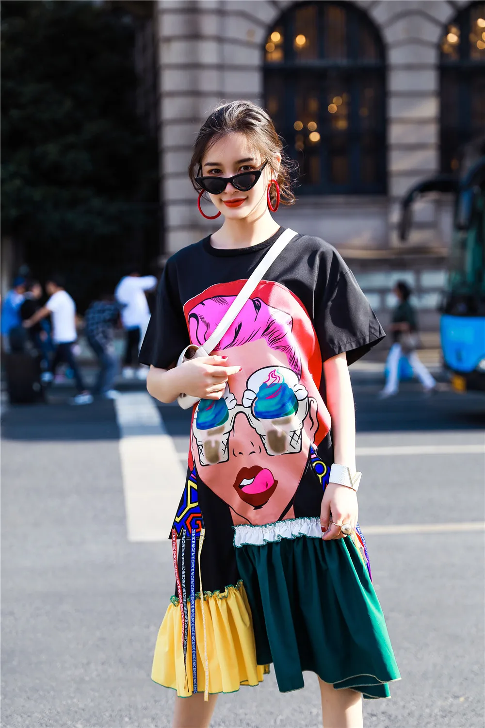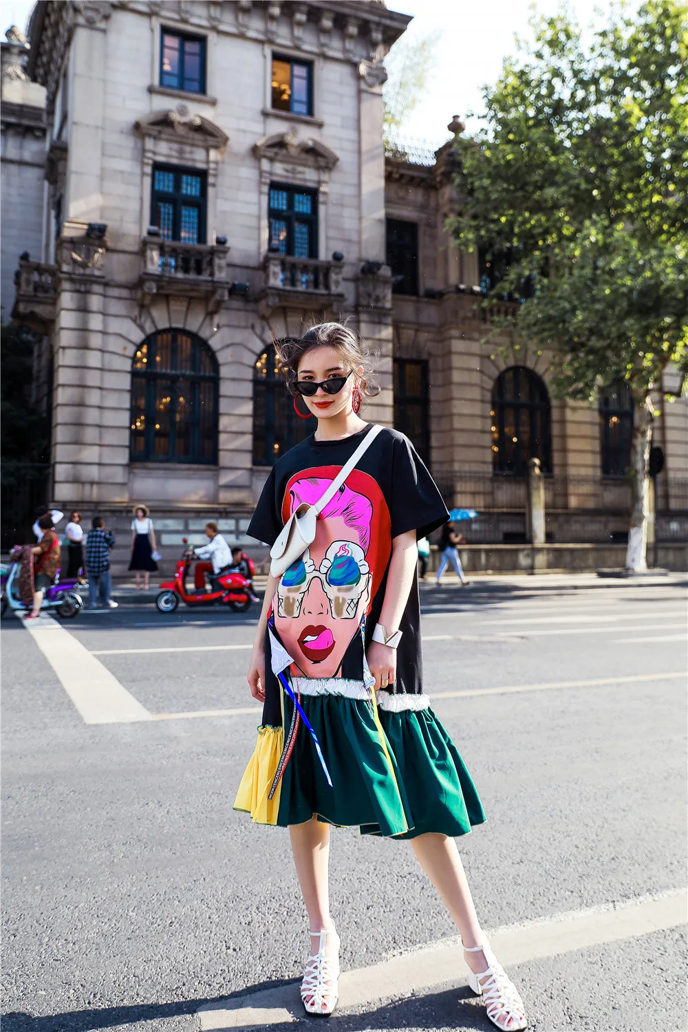 Product Name: Платье большого размера на весну и лето 2019, уличная одежда, Хлопковое платье, платье для автопортрета, Платье До Колена с рисунком