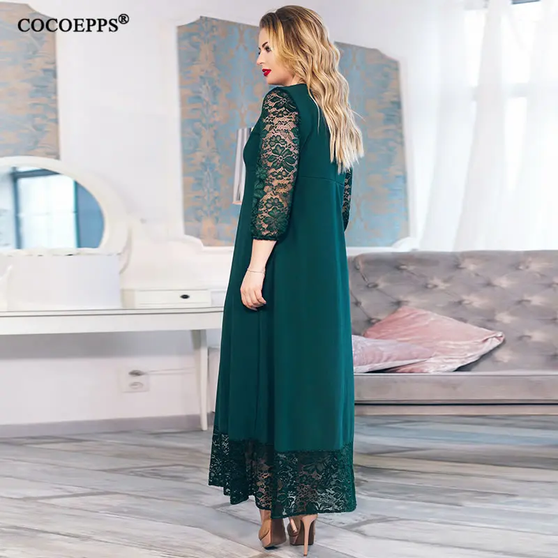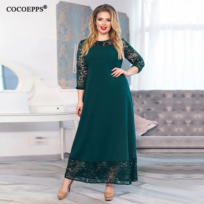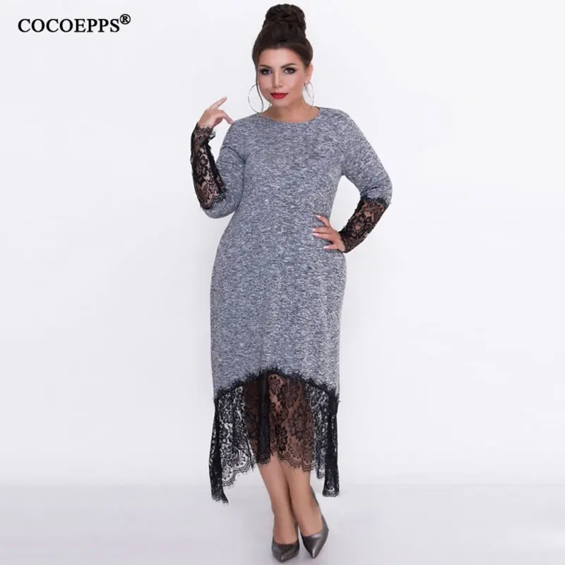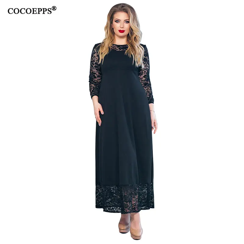 Product Name: 5XL 6XL 2020 Новое лоскутное Свободное длинное платье макси осень зима большие размеры женское платье плюс размер с длинным рукавом o образным вы...
