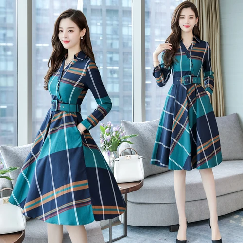 (30% Off) Купить Женское платье с длинным рукавом Stinlicher, офисное в полоску, женское платье рубашка шотландскую клетку поясом, весенне осенняя одеж... Цена Дешево