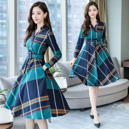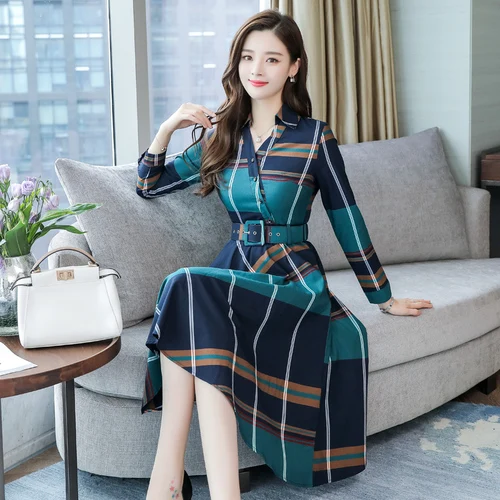 Special Offer Женское платье с длинным рукавом Stinlicher, офисное платье в полоску, женское платье рубашка в шотландскую клетку с поясом, весенне осенняя одеж... Discount 30% Today!