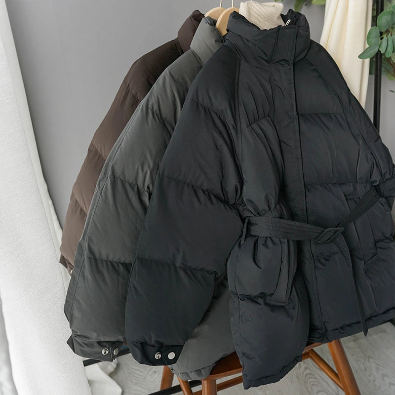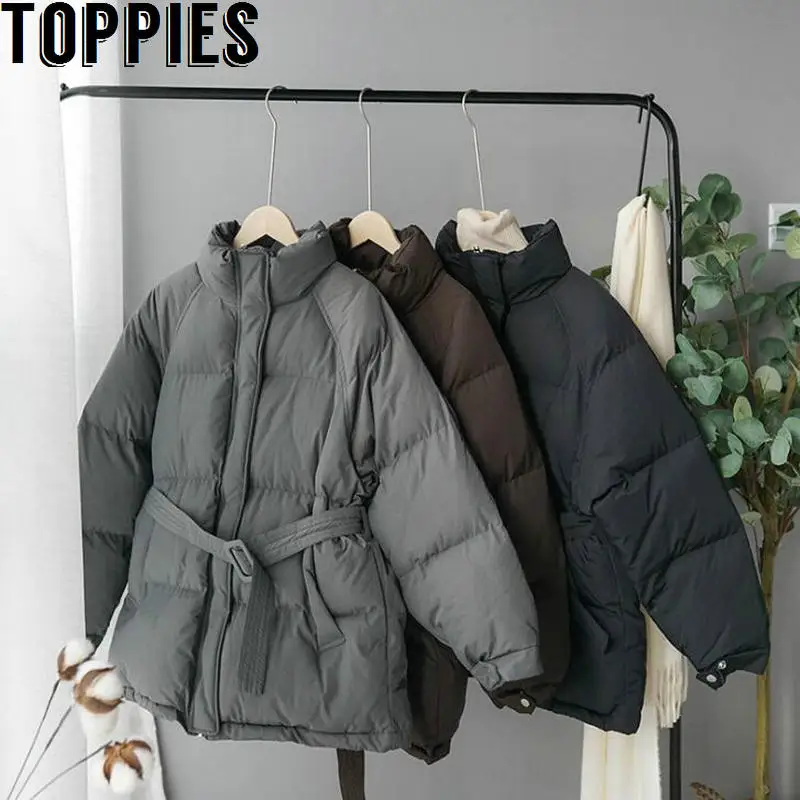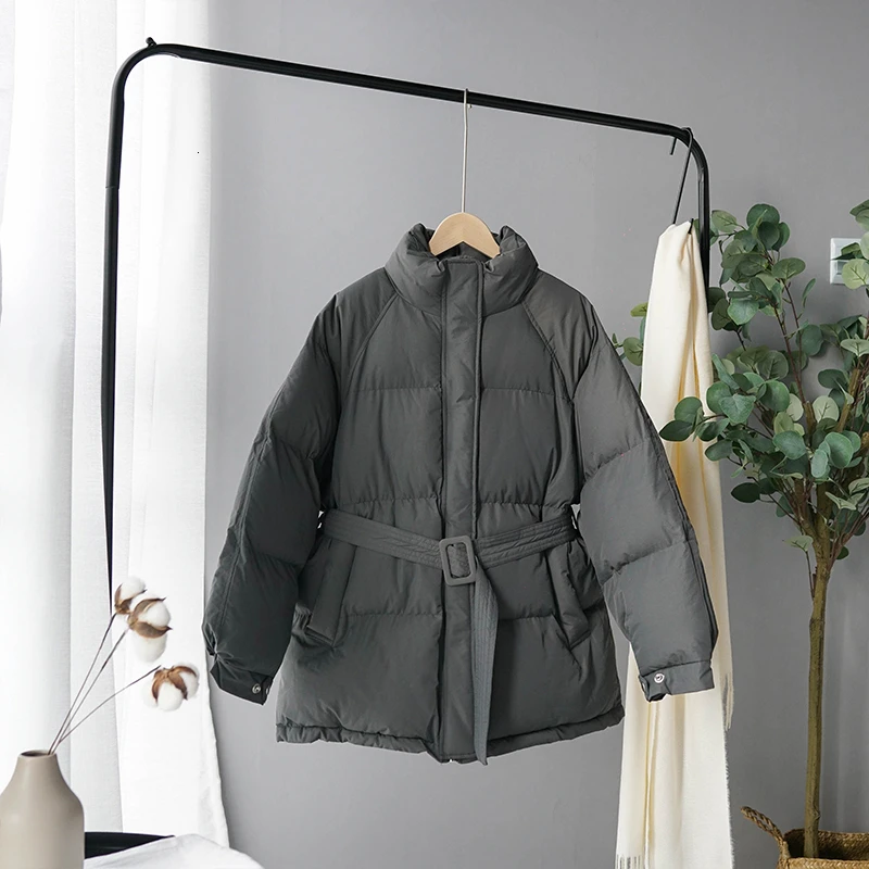 Product Name: Зимняя женская куртка, Корейская куртка, длинное пальто с поясом, хлопковая стеганая одежда, парки с воротником стойкой, Толстая теплая верх...
