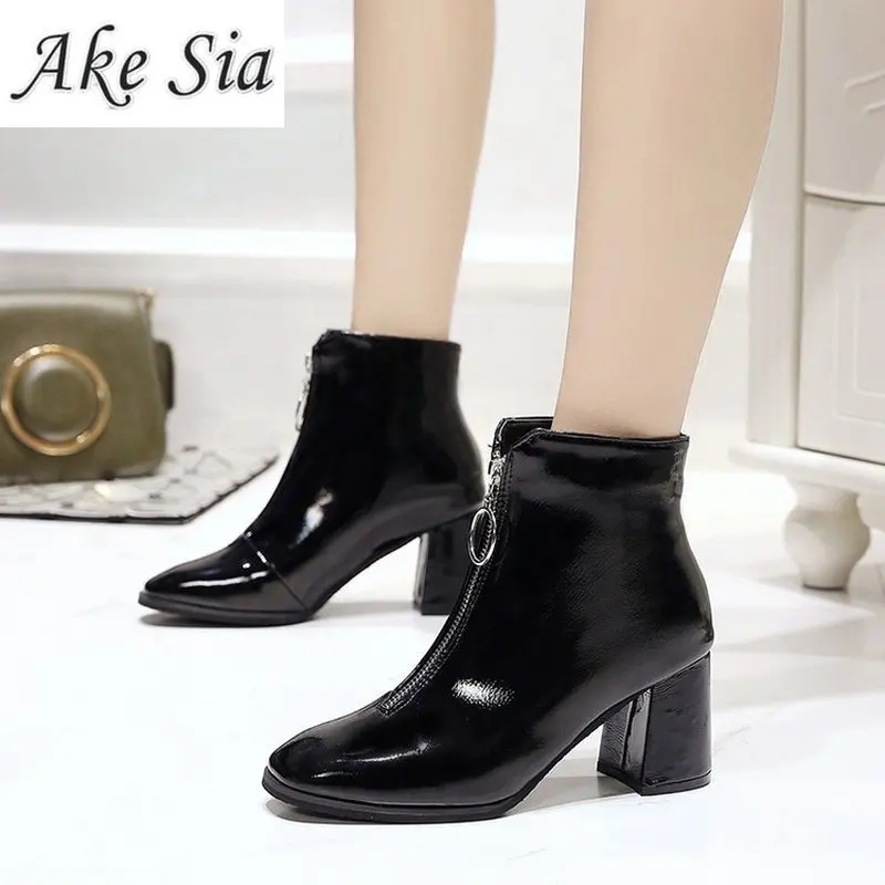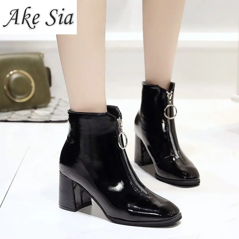 Product Name: 2019 г. Брендовые ботинки на молнии женская большая молния спереди открытые ботинки до середины икры зимние Ботинки Martin из лакированной кожи ...