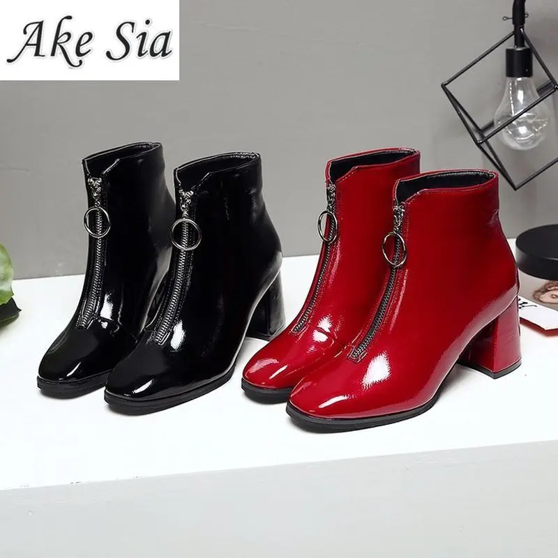 Special Offer 2019 г. Брендовые ботинки на молнии женская большая молния спереди открытые ботинки до середины икры зимние Ботинки Martin из лакированной кожи ... Discount 31% Today!