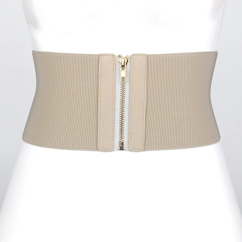 Product Name: Женский однотонный широкий пояс на молнии, эластичный пояс, эластичный пояс, тонкий модный хаки, верблюжий, черный, 200 A953