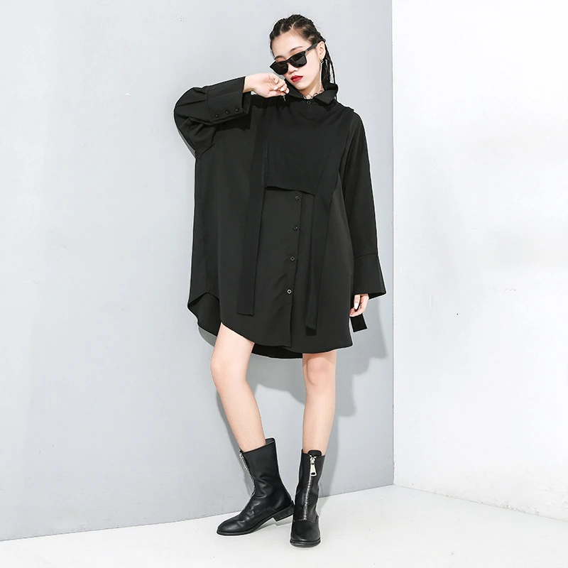 Special Offer [EAM] Женская черная блузка с разрезом большого размера из двух частей, новая свободная рубашка с отворотом и длинным рукавом, модная весенняя... Discount 33% Today!
