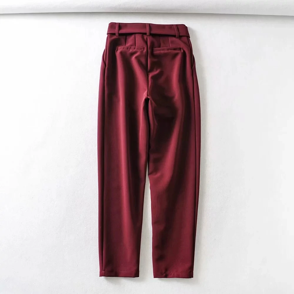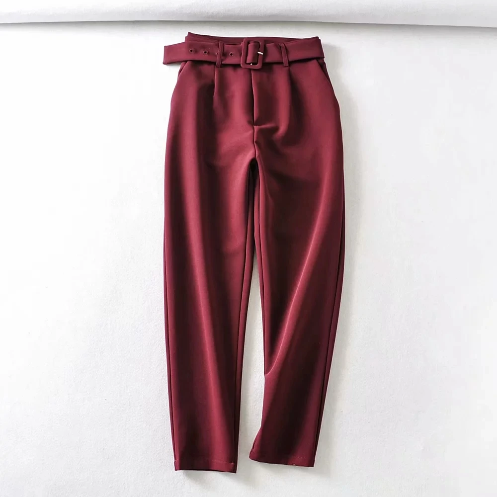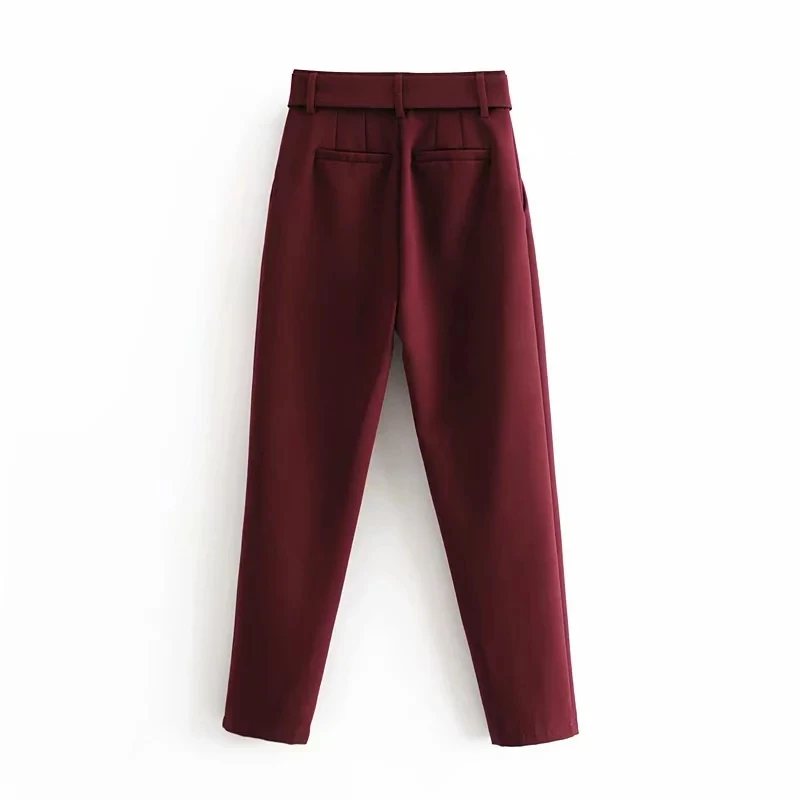 Product Name: Новый цвет, цвет красного вина, женский костюм, брюки, брюки с высокой талией, повседневные брюки с поясом, брюки, zoravicky, женские офисные фиоле...