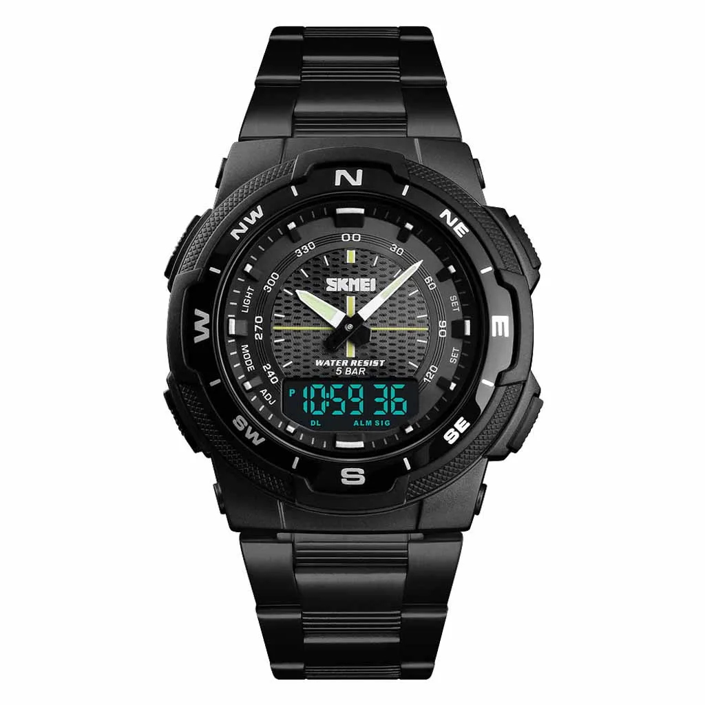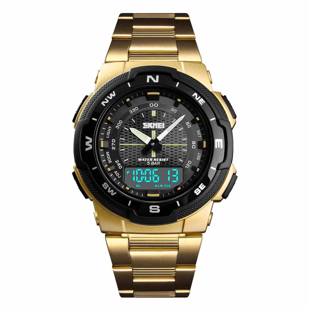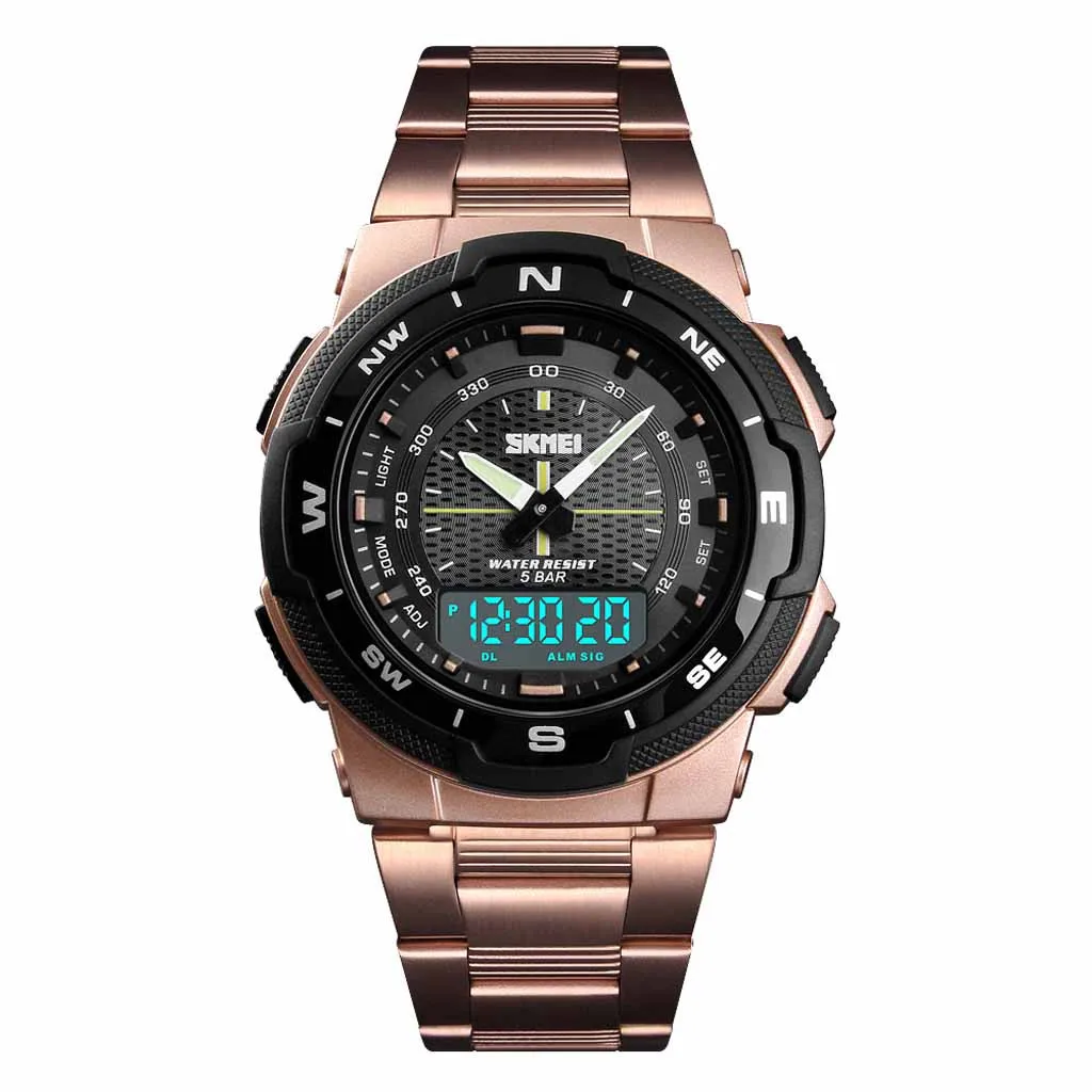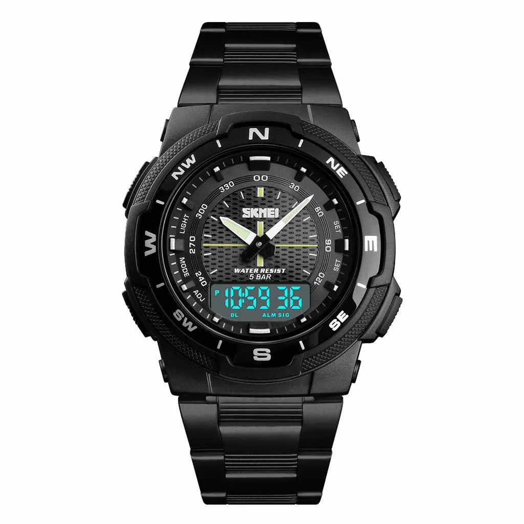 Product Name: Модные и повседневные мужские Бизнес часы с двойным дисплеем часы браслет застежка стальной пояс мужские часы из нержавеющей стали 3 бар L0522