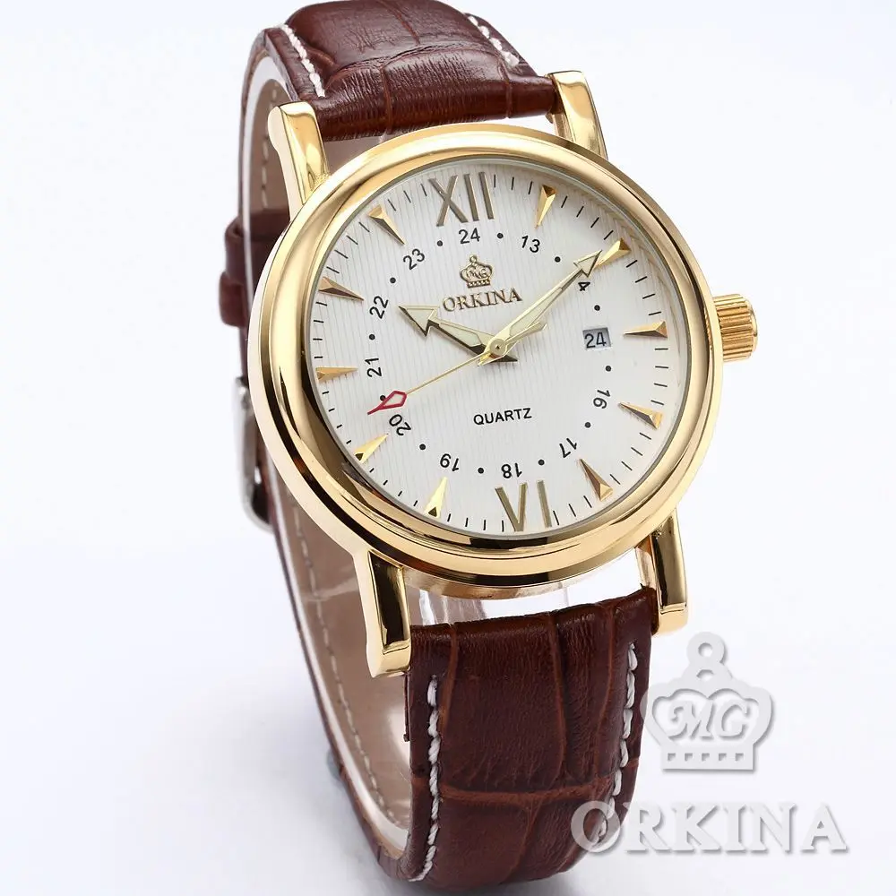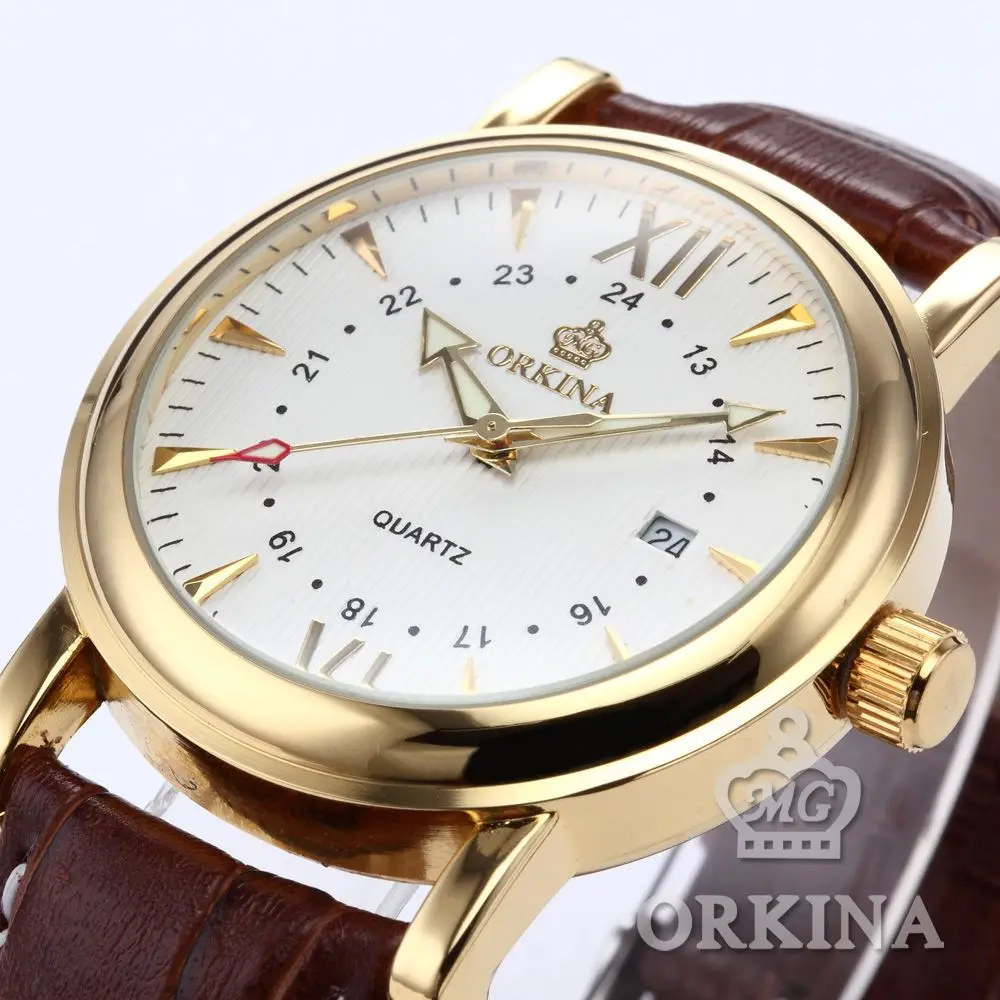 (41% Off) Купить Золотые мужские часы, коричневые аналоговые ремень из натуральной кожи, Montre Homme, Роскошные Кварцевые Reloj Hombre, Relogio ... Цена Дешево